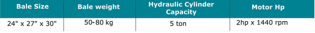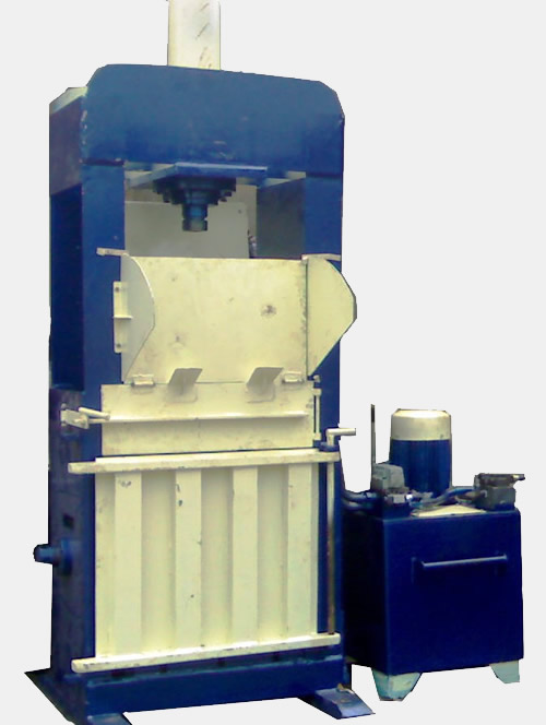 In vertical Balers – The bales are tied with steel wire or plastic ropes which manually slots in the pressing block. This allows the wire to easily pass through the material. Chain-lever arrangement is provided at the bottom to facilitate ejection of the bundle / bale when cylinder moves upward.